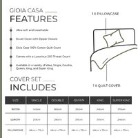 - Quilt Cover: 245 x 210 cm