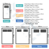 | Set | 1 x Flat sheet 1 x fitted sheet 2 Pillow Covers |