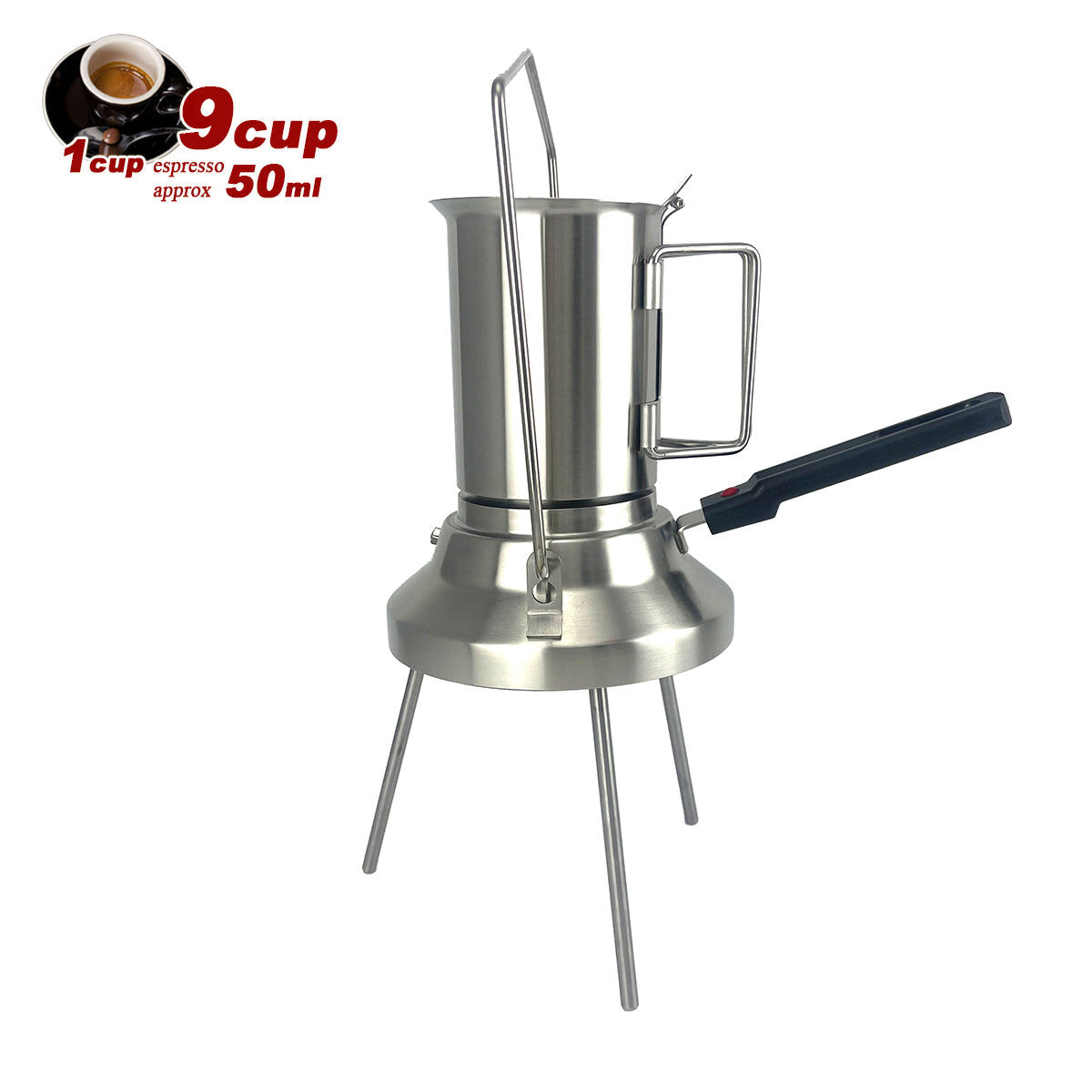 2 In 1 Camping Stainless Steel 9Cup Pot Moka Coffee Maker Italian Espresso Kettle 2024 NEW MODLE