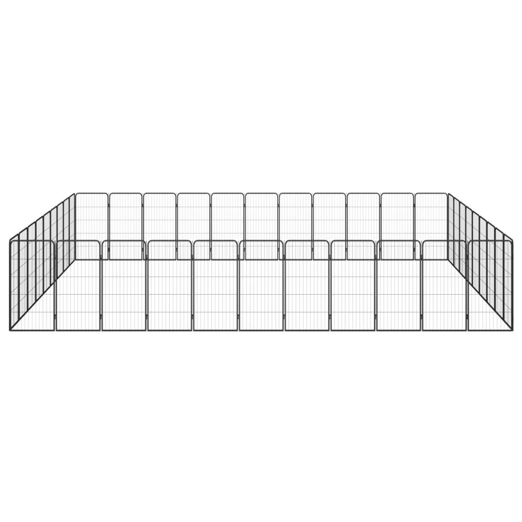 This heavy-duty dog playpen will make a perfect play paradise for your dogs! It will be a great choice for professional trainers and dog lovers alike. Sturdy material: The dog kennel is made of powder-coated steel, sturdy and durable, ensuring years of use with little maintenance.Safe exercise space: Providing ample exercise space, the steel-bar walls of the puppy playpen help prevent mischief and unexpected accidents while enabling ventilation.Firm-secured accessories: The included rods connecting each panel can be inserted into grassland, which provides great stability.DIY assembly: The outdoor dog kennel features multiple panels, so you can assemble it to any shape and size you want. Note:Each product comes with an assembly manual in the box for easy assembly.