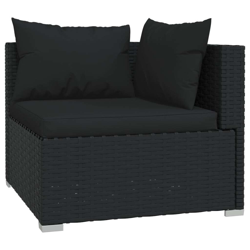 Relax and enjoy with your family and friends in your outdoor space on this poly rattan garden lounge set with cushions! Modular design: This design makes it possible to place the seat in any arrangement or combine it with other modular segments to meet your needs!Premium material: The patio lounge set is designed with water-resistant PE rattan, making it hard-wearing and suitable for daily outdoor use.Sturdy frame: This outdoor lounge set features a sturdy powder-coated steel frame and plastic chrome feet, which are highly durable. Thanks to its lightweight construction, it is easy to move.Comfortable cushions: Made of fabric, the thickly padded and removable cushions are soft to touch and bring you extra comfort. Note: In order to extend the life of your outdoor furniture, we recommend you to clean it regularly and do not leave it outdoors without protection unnecessarily. Clean: Use a mild soap solution. Storing: If possible, store in a cool, dry place indoors. If the product is stored outdoors, protect it with a waterproof cover. Wipe and dry the excess water or snow from flat surfaces after a rain or snowfall. Allow sufficient air circulation to avoid moisture-related damage.