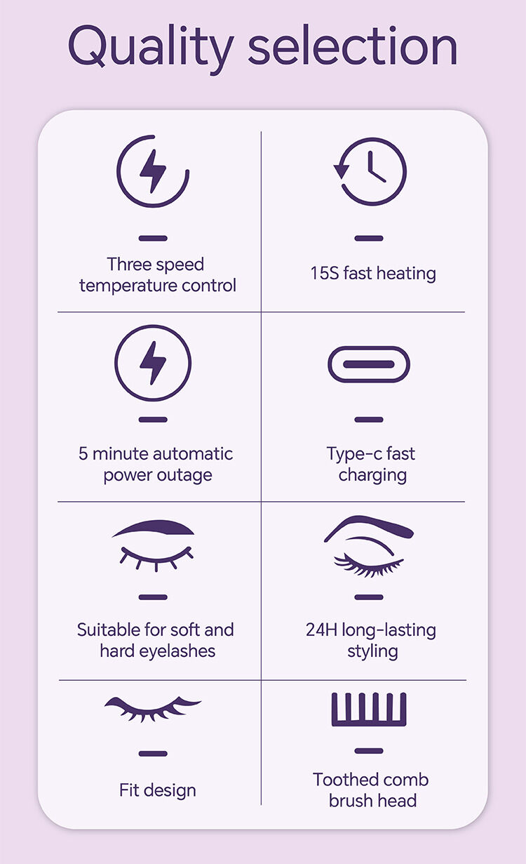 - Three-Level Temperature Control: Adjustable heat settings to suit different lash types and preferences, ensuring safe and effective curling.