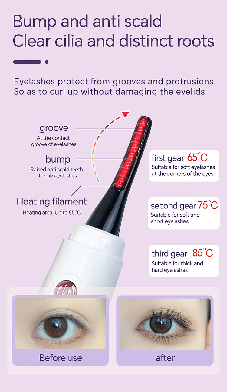 Whether you're a professional makeup artist or simply looking to elevate your everyday makeup routine, this heated eyelash curler is a must-have tool. It's easy to use, delivers professional results, and makes your lashes look effortlessly voluminous and curled.