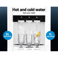 Filtered, clean and pure water on demand. With the Devanti Countertop Water Dispenser, it could not be any easier. The large 22-litre water purifier container ensures that ample drinking water is always on call without hassle. Better still, the food-grade plastic container is refillable to ensure you can always have water anytime without having to wait for delivery of bottled water. Best of all, the water undergoes a 6-stage filtration process that rids it of harmful impurities, chemicals and odours for pure, unadulterated drinking water at the right pH level. The dispenser comes with three taps to deliver water at hot, cold or room temperature options. Plus, the dispenser also comes with a smart detachable water guide plate that allows you to use bottled water if needed. The dispenser is designed for safe use with protection against overheating, over-current, drying out and electric shocks. Not least, the dispenser can be placed on any counter top for convenient use and the anti-slip feet ensure that the ensemble stays firmly in place.