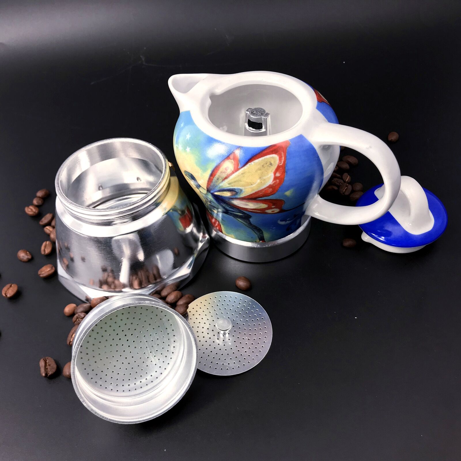 Fairy Vintage Porcelain Ceramic Italian Stove Top Espresso Coffee Maker 3-4Cups 200ml