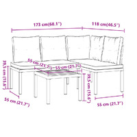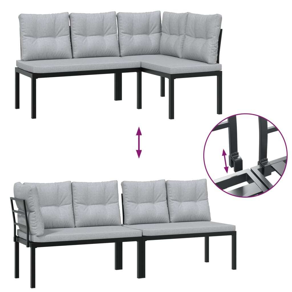 This garden bench set is perfect for outdoor use and is designed to be the focal point of your garden, terrace, patio, etc. Robust and stable frame: The powder-coated steel frame is strong, stable, durable, and resistant to corrosion and harsh weather, ensuring long-lasting performance.Comfortable seat experience: This outdoor furniture, complete with thickly padded cushions, offers a comfortable seating experience.Sturdy top: The sturdy tabletop of the patio table is ideal for placing your drinks or any other necessities you need close at hand.Removable and washable cover: These seat cushions feature removable covers for easy washing and maintenance. Good to know:To make sure your outdoor furniture stays beautiful, we recommend protecting it with a waterproof cover.