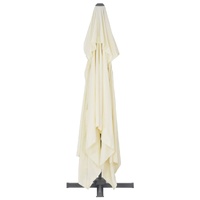 This garden parasol features a sturdy aluminium frame, a large UV-resistant cover and an extra portable base, so it is perfect for protecting you from sunlight. This garden umbrella can be easily opened and closed by simply turning the knob on the pole. The aluminium pole, along with the 8 sturdy aluminium ribs, makes the outdoor umbrella very durable. The exclusive design of this parasol allows you to tilt and rotate it in 360 degrees to block the sun. Moreover, the large, detachable steel cross base adds stability without taking up too much space. The extra parasol base consists of four separate parts and can be filled with 60 litres of water or 80 kg of sand. It is ideal for steadying parasols with a cross base. Pouring out the filler, the parasol base is light in weight, which makes it easy to carry.