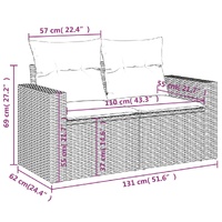 Relax and enjoy the outdoors in this comfortable 2-seater garden sofa! Durable material: PE rattan, also known as poly rattan, is a strong, low-maintenance synthetic material that looks like natural rattan. It's lightweight, easy to clean, and commonly used for outdoor furniture due to its durability and weather-resistant properties.Storage function with water-resistant bag: Each garden seat features a storage space under the seat, complete with a water-resistant bag for storing cushions, toys, and other items. The inner bags have a top cover and can be securely fastened to the seats with the hook-and-loop fasteners for added stability.Comfortable seat experience: This outdoor furniture, complete with thickly padded cushions, offers a comfortable seating experience. The wide armrests also provide a convenient spot to keep your cellphone, cups, or other small items within easy reach.Removable and washable cover: These seat cushions feature removable covers for easy washing and maintenance.Modular design: This outdoor furniture set has a modular design, making it completely flexible and easy to move around, so you can create a customised outdoor furniture arrangement. Good to know:To make sure your outdoor furniture stays beautiful, we recommend protecting it with a waterproof cover.
