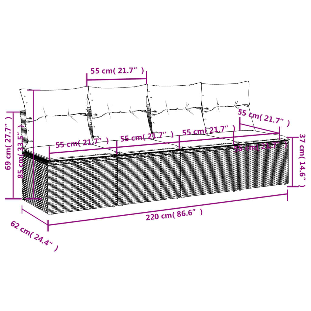 Relax and enjoy the outdoors in this comfortable 4-seater garden sofa! Durable material: PE rattan, also known as poly rattan, is a strong, low-maintenance synthetic material that looks like natural rattan. It's lightweight, easy to clean, and commonly used for outdoor furniture due to its durability and weather-resistant properties.Comfortable seat experience: This outdoor furniture, complete with thickly padded cushions, offers a comfortable seating experience.Removable and washable cover: These seat cushions feature removable covers for easy washing and maintenance.Modular design: This outdoor furniture set has a modular design, making it completely flexible and easy to move around, so you can create a customised outdoor furniture arrangement. Good to know:To make sure your outdoor furniture stays beautiful, we recommend protecting it with a waterproof cover.