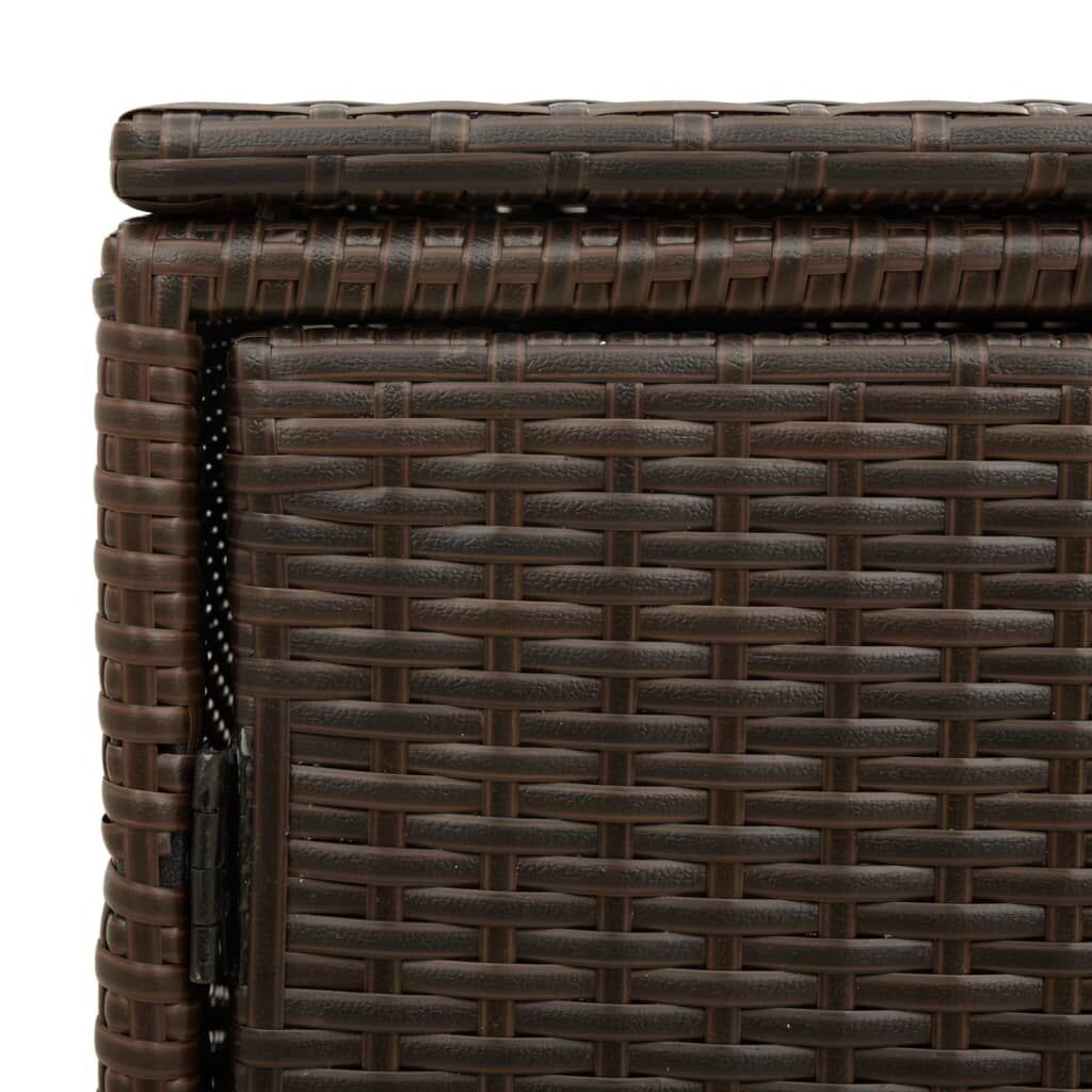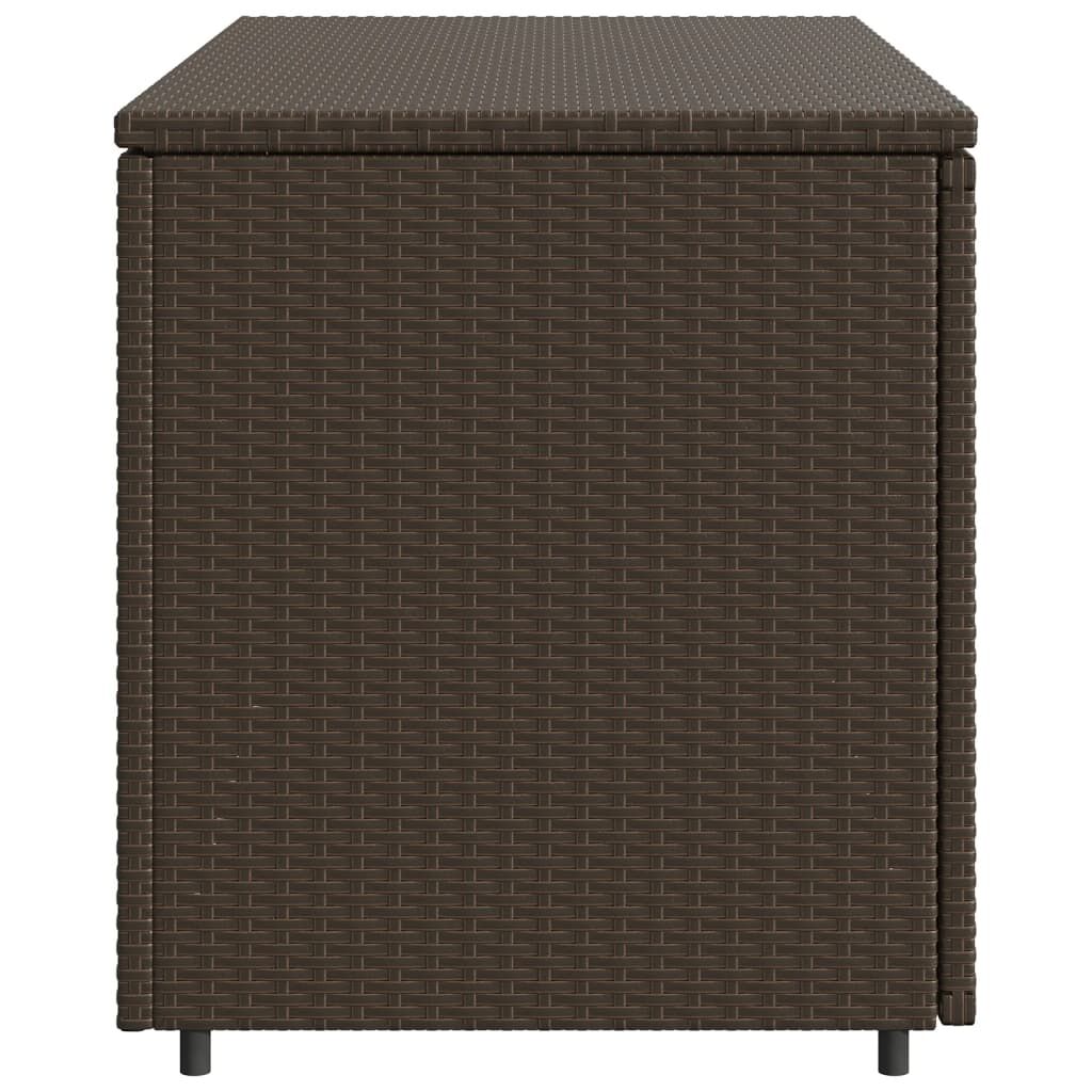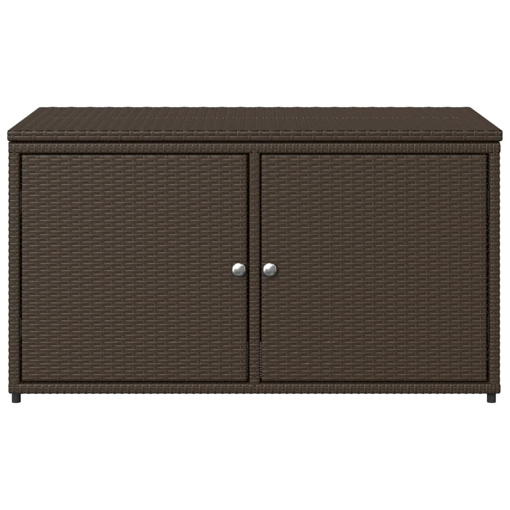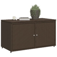 This garden storage cabinet is perfect for keeping your outdoor furniture cushions, gardening supplies, pool towels, and other items organised and easily accessible. Durable material: PE rattan, also known as poly rattan, is a strong, low-maintenance synthetic material that looks like natural rattan. It's lightweight, easy to clean, and commonly used for outdoor furniture due to its durability and weather-resistant properties.Ample storage space: This outdoor storage cabinet has a large space behind the two doors to store your garden tools, pool toys, outdoor cushions, and more.Robust and stable frame: The powder-coated steel frame ensures the garden furniture is strong and stable for daily outdoor use. Practical design: Both 2 doors are equipped with stainless steel door knobs and magnets for easy opening and closing. The top lid helps for easy storage and easy access to your items. WarningTo prevent it being overturned, this product must be used with the provided wall attachment device. Good to know:To make sure your outdoor furniture stays beautiful, we recommend protecting it with a waterproof cover.