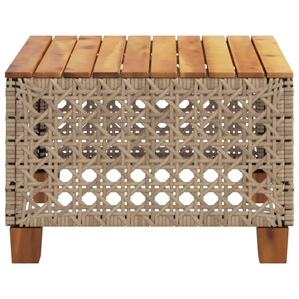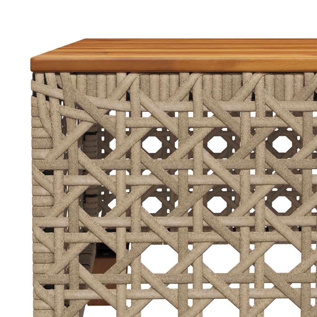 Gather around this garden table to enjoy a cup of coffee or have a chat with your family and friends in the garden, backyard, or on the patio! Durable material: PE rattan, also known as poly rattan, is a strong, low-maintenance synthetic material that looks like natural rattan. It's lightweight, easy to clean, and commonly used for outdoor furniture due to its durability and weather-resistant properties.Stable and easy-to-clean tabletop: This garden table has an acacia wood top that is sturdy, durable, and easy to clean with a damp cloth.Robust and stable frame: The powder-coated steel frame ensures that the garden furniture is strong and stable for daily outdoor use. Good to know:To make sure your outdoor furniture stays beautiful, we recommend protecting it with a waterproof cover.