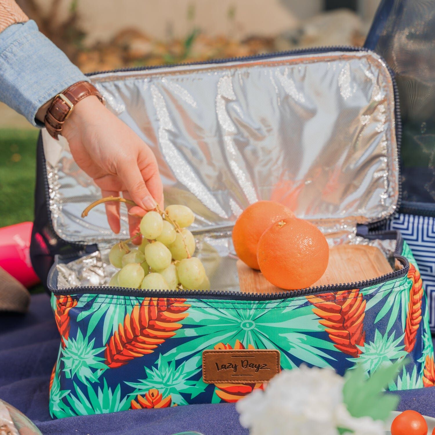 The Mesh Tote Cooler is right on the money. With a breathable mesh fabric up top and a cooler bag below it has you covered.