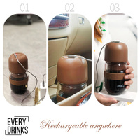 Everydrinks is an all-in-one electric coffee grinder and drip coffee maker pour-over coffeemaker which provides expert bean-to-cup brewing for coffee lovers. It combines electric grinder, pouring kettle, etched stainless filter dripper, server, insulated coffee cup and lid into one easy to carry unit. Weighing just 362g allows to bring it to work or school, on holidays, or keep it within the household. It serves the best way to have quality coffee by grinding freshly roasted coffee beans and brewing anywhere.