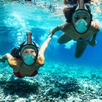 The full face snorkeling mask is specially designed for leisure snorkeling. It is only suitable for surface snorkeling and is not meant to replace any professional snorkel set and diving equipment. When snorkeling, you must rest regularly and follow the rules of partners: never snorkel alone. Before you go snorkeling, try it in the swimming pool to make sure it is completely sealed and fits your face.
