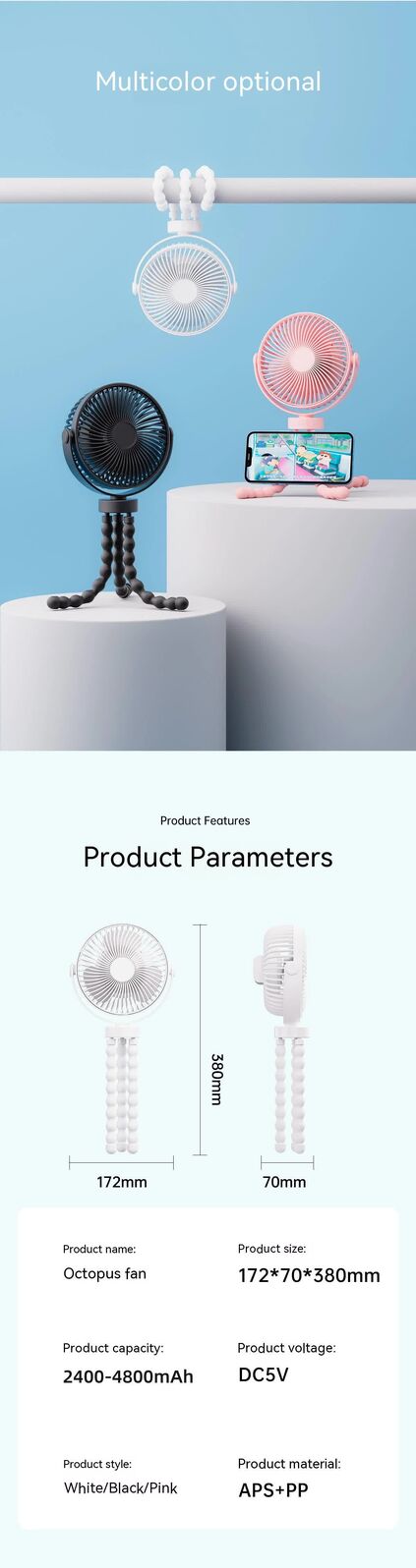 This fan is perfect for families on the go, offering reliable cooling in a safe and child-friendly design. Use it as a handheld fan, desk fan, or attach it to your baby's stroller for ultimate convenience.