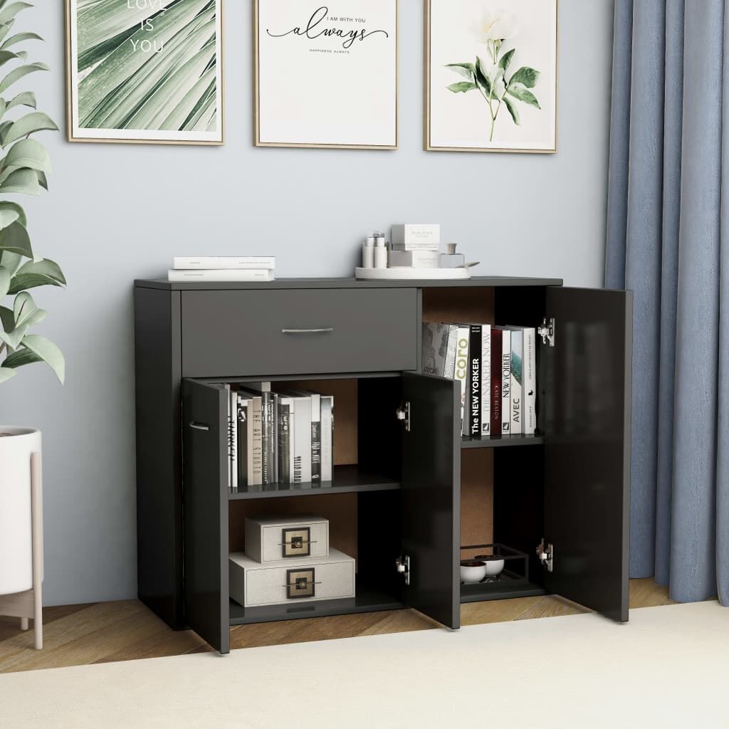 This sideboard, featuring a minimalist design, will make a practical as well as highly decorative addition to your home! Made of quality engineered wood, this sideboard is exceedingly durable and sturdy. With 1 large drawer and 3 doors, the sideboard provides ample storage space for books, multimedia appliances and other items. The sturdy tabletop is ideal for displaying decorative objects, photo frames, or potted plants. The sideboard is easy to assemble.
