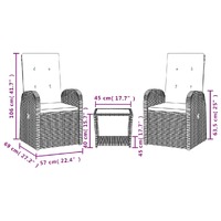 This garden dining set is a great choice for al fresco dining or just relaxing in the garden, backyard, or on the patio. Durable material: PE rattan, also known as poly rattan, is a strong, low-maintenance synthetic material that looks like natural rattan. It's lightweight, easy to clean, and commonly used for outdoor furniture due to its durability and weather-resistant properties.Adjustable backrest: This garden seat has a handle. You can adjust the backrest to any position by pulling the handle, and quickly return it to its original position.Comfortable seat experience: This outdoor furniture, complete with thickly padded cushions, offers a comfortable seating experience.Removable and washable cover: These seat cushions feature removable covers for easy washing and maintenance.Glass tabletop: The outdoor table's top is made from strong and durable tempered glass, making it easy to clean with a damp cloth and adding a touch of elegance to your outdoor space. Good to know:To make sure your outdoor furniture stays beautiful, we recommend protecting it with a waterproof cover.