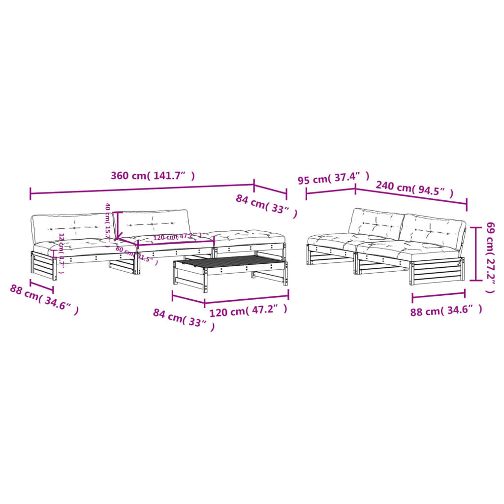 This wooden garden lounge set, standing out with the slatted design and soft cushions, will make a great addition to your garden, patio, or terrace for enjoying a cosy time with your family or friends. Solid pine wood: Solid pine wood is a beautiful natural material. Pine wood has a straight grain, and the knots give the material its signature, rustic look.Sturdy and stable frame: The wooden frames make the lounge set sturdy and stable for daily outdoor use.Comfortable seat experience: The backrest adds extra seating comfort for the garden furniture set. Also, the thickly padded cushion provides comfort for your sitting time.Modular design: The sofa set is flexible and easy to move around. You can combine it with other modular segments in the webshop to create your own personal garden lounge set configurations! Good to know:To make sure your outdoor furniture stays beautiful, we recommend protecting it with a waterproof cover.