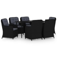 Enjoy a nice meal or afternoon tea in your outdoor space with this garden dining set! Featuring an elegant design, it will become the focal point of your garden and patio! The practical outdoor dining set has a steel frame, making it strong and sturdy. The garden chairs are made of water-resistant and maintenance-free PE rattan, making them perfect for outdoor use. The ergonomically-designed shape and thickly-padded, removable cushions with foam filling will provide the ultimate seating comfort. The low-maintenance polyester cushion and pillow covers can be easily removed and washed. In addition, the smooth glass tabletop is easy to clean with a damp cloth and excellent for placing meals, drinks and other decorative items. Note: In order to extend the life of your outdoor furniture, we recommend you to clean it regularly and do not leave it outdoors without protection unnecessarily.Clean: Use a mild soap solution.Storing: If possible, store in a cool, dry place indoors. If the product is stored outdoors, protect it with a waterproof cover. Wipe and dry the excess water or snow from flat surfaces after a rain or snowfall. Allow sufficient air circulation to avoid moisture-related damage.