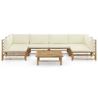 Create a relaxing lounge area with this bamboo garden lounge set. This garden lounge set is made of bamboo, making it sturdy and easy to clean. The thickly padded cushions add extra comfort in your lounging time. The cushion covers are removable and washable with zips. With a lightweight construction, this outdoor lounge set is easy to move around. Thanks to the modular design, you can place the set in any arrangement as per your preference. Note: In order to extend the life of your outdoor furniture, we recommend you to clean it regularly and do not leave it outdoors without protection unnecessarily.Clean: Use a mild soap solutionStoring: If possible, store in a cool, dry place indoors. If the product is stored outdoors, protect it with a waterproof cover. Wipe and dry the excess water or snow from flat surfaces after a rain or snowfall. Allow sufficient air circulation to avoid moisture-related damage. Note: In order to extend the life of your outdoor furniture, we recommend you to clean it regularly and do not leave it outdoors without protection unnecessarily.Clean: Use a mild soap solution.Storing: If possible, store in a cool, dry place indoors. If the product is stored outdoors, protect it with a waterproof cover. Wipe and dry the excess water or snow from flat surfaces after a rain or snowfall. Allow sufficient air circulation to avoid moisture-related damage.