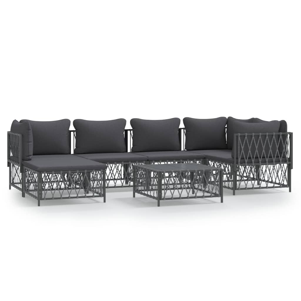 Enjoy a cup of coffee or tea in your outdoor space with this comfortable garden lounge set! Durable material: Woven fabric is any textile formed by weaving. It's an extremely useful type of fabric that we use a great deal in our everyday lives due to its durability and versatility.Sturdy frame: The powder-coated steel frame makes the lounge set sturdy and stable for daily outdoor use.Comfortable seat experience: The backrest adds extra seating comfort for the outdoor sofa. Also, the thickly padded cushions provide comfort for your sitting time.Modular design: The sofa set is flexible and easy to move around, so you can combine it with other modular segments in the webshop to create your own personal garden lounge set configurations! Note:To make sure your outdoor furniture stays beautiful, we recommend protecting it with a waterproof cover.