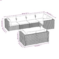 Relax and enjoy your leisure time with this trendy poly rattan garden lounge set! It is meant to be an excellent choice for you to take a breather from your hectic life. Sturdy and lightweight frame: This patio lounge set features a sturdy powder coating steel frame and plastic chrome feet, which is highly durable. Thanks to its lightweight construction, the sofa set is easy to move.Water-resistant material: Made of water-resistant material, the garden sofa set can withstand humidity and rainy weather. It can also be easily cleaned with a damp cloth when needed.Modular design: The modular design makes it possible to place the set in any arrangement or combine them with other modular segments to meet your needs.Comfortable cushions: The thickly padded and removable cushions provide optimal comfort for your outdoor sitting. Note:In order to extend the life of your outdoor furniture, we recommend you to clean it regularly and do not leave it outdoors without protection unnecessarily.Clean: Use a mild soap solution.Storing: If possible, store in a cool, dry place indoors. If the product is stored outdoors, protect it with a waterproof cover. Wipe and dry the excess water or snow from flat surfaces after a rain or snowfall. Allow sufficient air circulation to avoid moisture-related damage.