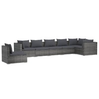 Enjoy your relaxing time with this trendy garden lounge set! It can meet a variety of different needs. Sturdy frame: This patio lounge set features a sturdy powder coating steel frame and plastic chrome feet, which is highly durable.Premium material: The garden sofa set is designed with water-resistant PE rattan, making it easy to clean, hard-wearing, and suitable for daily outdoor use.Modular design: The modular design also makes it possible to place the set in any arrangement or combine them with other modular segments to meet your needs.Added sitting comfort: The thickly padded and removable cushions and pillows provide optimal comfort for your outdoor sitting experience. Note:In order to extend the life of your outdoor furniture, we recommend you to clean it regularly and do not leave it outdoors without protection unnecessarily.Clean: Use a mild soap solution.Storing: If possible, store in a cool, dry place indoors. If the product is stored outdoors, protect it with a waterproof cover. Wipe and dry the excess water or snow from flat surfaces after a rain or snowfall. Allow sufficient air circulation to avoid moisture-related damage.