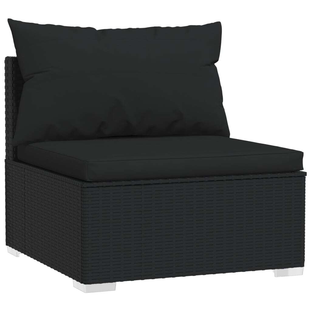 Relax and enjoy your leisure time with this trendy poly rattan garden lounge set! It is meant to be an excellent choice for you to take a breather from your hectic life. Sturdy and lightweight frame: This patio lounge set features a sturdy powder coating steel frame and plastic chrome feet, which is highly durable. Thanks to its lightweight construction, the sofa set is easy to move.Water-resistant material: Made of water-resistant material, the garden sofa set can withstand humidity and rainy weather. It can also be easily cleaned with a damp cloth when needed.Modular design: The modular design makes it possible to place the set in any arrangement or combine them with other modular segments to meet your needs.Comfortable cushions: The thickly padded and removable cushions provide optimal comfort for your outdoor sitting. Note:In order to extend the life of your outdoor furniture, we recommend you to clean it regularly and do not leave it outdoors without protection unnecessarily.Clean: Use a mild soap solution.Storing: If possible, store in a cool, dry place indoors. If the product is stored outdoors, protect it with a waterproof cover. Wipe and dry the excess water or snow from flat surfaces after a rain or snowfall. Allow sufficient air circulation to avoid moisture-related damage.