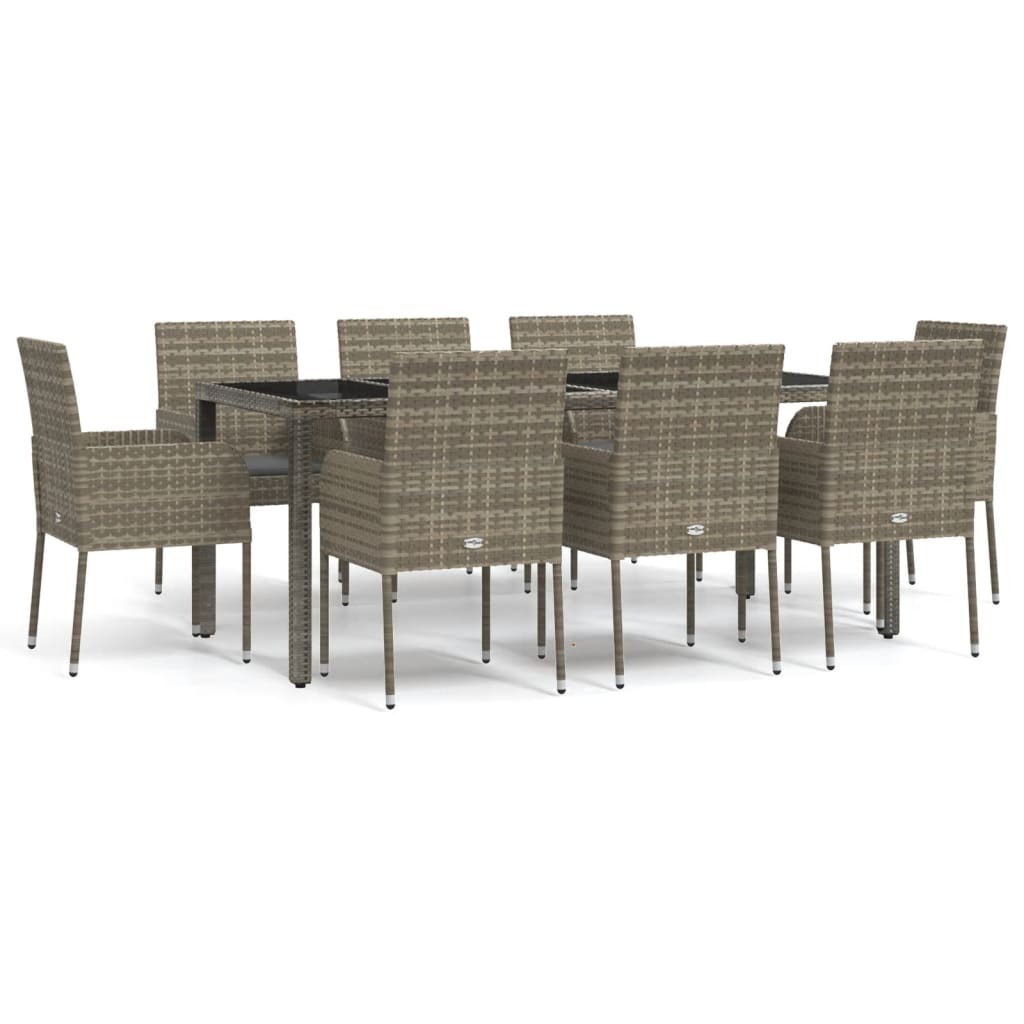 This trendy garden dining set, featuring an elegant and contemporary design, is a great choice for dining or relaxing in your garden. Weather-resistant material: PE rattan, also known as poly rattan, is weather resistant and easy to clean. It remains beautiful on the outside for a long period of time. It offers great quality, convenience and an aesthetic look.Sturdy frame: The powder-coated steel frames make the outdoor dining set sturdy and stable for daily outdoor use.Practical tabletop: The smooth tabletop of the garden table is made of tempered glass which is easy to clean with a damp cloth. Additionally, the sturdy tabletop is perfect for placing meals, drinks, and other decorative items.Modular design: The patio dining set is flexible and easy to move around, so you can combine it with other modular segments in the webshop to create your own personal garden dining set configurations!Comfortable seat experience: The backrest adds extra seating comfort for the garden chair. Also, the thickly padded cushions provide comfort for your sitting time. Good to know:To make assembly as easy as possible, each product is delivered with a manual. Note:To make sure your outdoor furniture stays beautiful, we recommend protecting it with a waterproof cover.