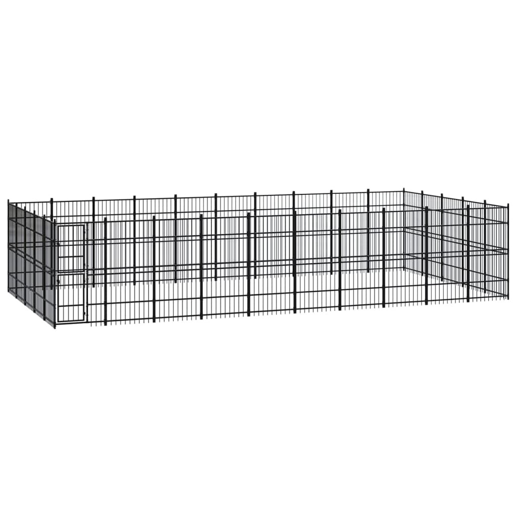 This versatile dog kennel features multiple uses: playing, exercising, training, or simply keeping your dog safe. It will be the perfect play paradise for your furry friends! This dog kennel provides ample exercise space. The walls of steel bars help prevent mischief and unexpected accidents while enabling ventilation. Thanks to the sturdy powder-coated steel construction, this dog kennel is durable and built to last. The hinged door with a lockable latch system ensures extra security and safety for your dogs.