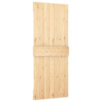 This solid pine wood sliding door is designed to enrich the entrance area of your house and also ensure better security for your home. Solid pine wood: The interior door is made of solid pine wood. Solid pine wood is a beautiful natural material. Pine wood has a straight grain, and the knots give the material its signature, rustic look.Sturdy sliding rails: Steel is an exceptionally hard and strong material. It offers sturdiness and stability. The powder coating on steel creates a protective layer against wear and tear. Made of powder-coated steel, the sliding rails are sturdy, durable and heavy-duty.Quiet and smooth sliding: Thanks to the internal bearings, your internal sliding door will slide smoothly and quietly. Doorstops are also included to prevent the derailing of the rollers, while the rubber gaskets will buffer the bump from rollers and reduce the noise.Space-saving design: This wooden sliding door saves space and looks more spacious. It is the first choice for a simple and atmospheric modern home design.Wide applications: The sliding barn door can be installed on both wooden walls and concrete walls. It's great for use in the bedroom, kitchen, barn, garage, etc.