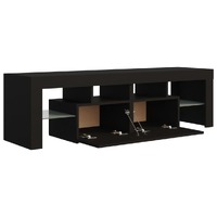 Featuring a trendy yet practical design, this TV cabinet with LED lights will definitely become a focal point of your room. Practical material: The engineered wood is of exceptional quality with smooth surface and also features strength, stability and resistance to moisture.Colourful LED lights: The TV stand features RGB LED lights, which has different menus to change the colour of lights and let the colour adjust automatically differently. The LED lights underline the modern look and contribute to the trendy feeling.Ample storage space: The TV unit provides plenty of storage space for keeping your magazines, books, remote controls and other small items well-organised and within easy reach.Displaying function: The sturdy top of media cabinet is ideal for displaying decorative objects, photo frames, or potted plants. Good to know:The product has a USB connector, but the certified 5V USB power source is not included.
