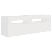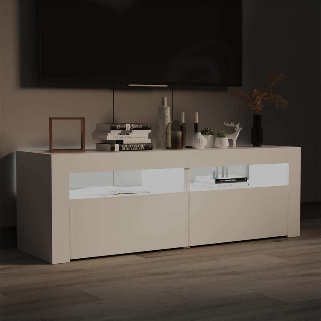 Featuring a trendy yet practical design, this TV cabinet with LED lights definitely becomes a focal point of your room. The sturdy construction of this HiFi cabinet makes it highly durable. There is ample space remaining for you to keep your DVD player, game console, streaming device, and media carriers neatly organised. This TV stand features RGB LED lights, which has different menus to change the colour of lights and let the colour adjust automatically differently. The LED lights underline the modern look and contribute to the trendy feeling. Additionally, this TV unit is easy to clean with a damp cloth. Note: The product has a USB connector, but the certified 5V USB power source is not included.