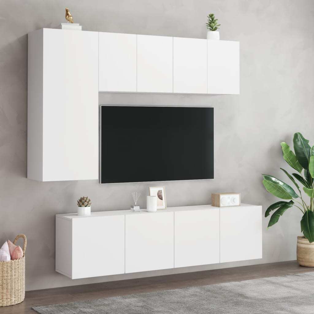 Featuring a trendy yet practical design, these TV cabinets will become a focal point of your room. Durable material: The engineered wood is of exceptional quality with smooth surface and also features strength, stability and resistance to moisture. Made of engineered wood, these TV stands are sturdy and durable.Ample storage space: These TV units offer ample storage space for keeping your DVD players, receivers, disks, and other small items well organised and within reach.Wall-mounted design: These media cabinets can be wall-mounted to add extra storage space. That way, you can maximise your floor space and keep the area clean. Good to know:Screws and plugs for inside the wall are not included. We advise to find and use screws and plugs suitable specifically for your walls. If you're not sure, you can consult with a professional. Please read and follow each step of the instructions.