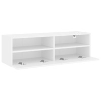 This TV wall cabinet is the perfect solution for your living space to maximise space and keep the floor areas uncluttered. Durable material: The engineered wood is of exceptional quality with a smooth surface and also features strength, stability and resistance to moisture.Ample storage space: The floating TV unit has 2 shelves and 2 compartments behind the door to keep your small items like books, DVDs, and magazines neatly organized and within reach.Wall-mounted design: This wall media unit can be wall-mounted to add extra storage space. That way, you can maximise your floor space and keep the area clean. Good to know:Screws and plugs for inside the wall are not included. We advise to find and use screws and plugs suitable specifically for your walls. If you're not sure, you can consult with a professional. Please read and follow each step of the instructions.
