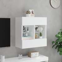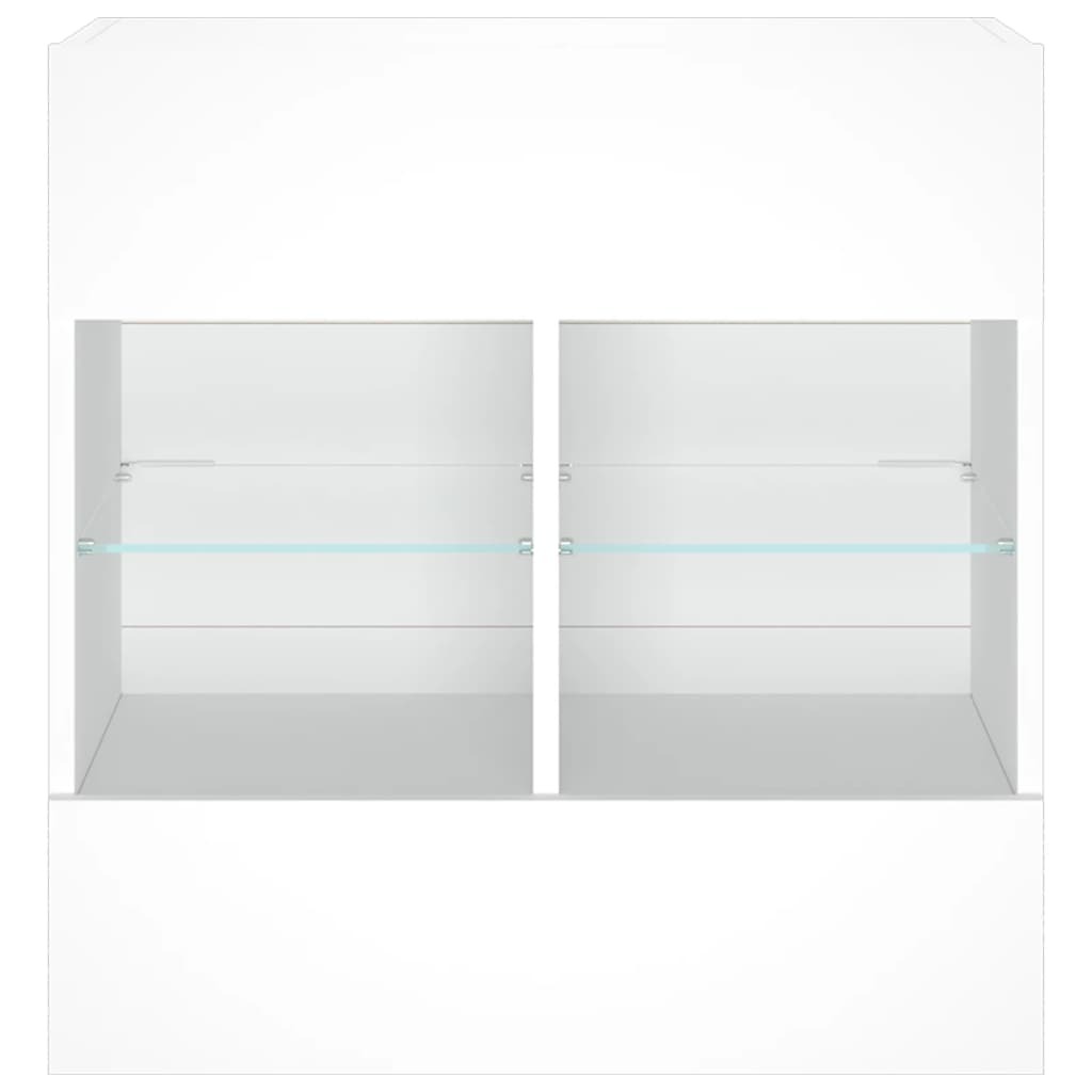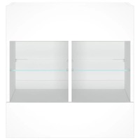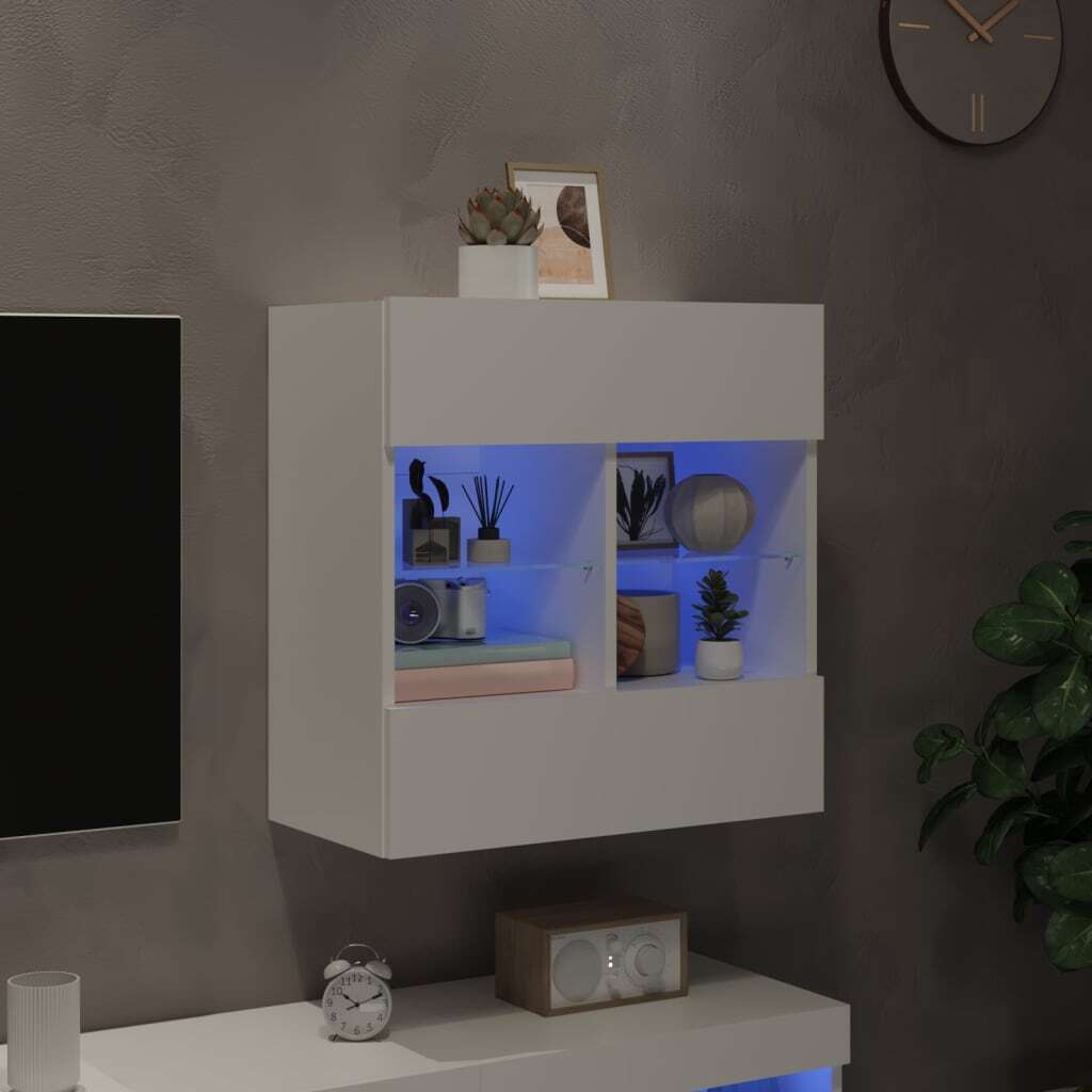 This TV wall cabinet is the perfect solution for your living space to maximise space and keep the floor areas uncluttered. Durable material: The engineered wood is of exceptional quality with a smooth surface and also features strength, stability and resistance to moisture.RGB LED lights: The wall media cabinet is equipped with vibrant RGB LED lights. With various customisable menus, you can effortlessly change the colour of the lights and even set them to adjust automatically. These LED lights not only enhance the contemporary look of the floating TV unit but also add to its trendy appeal.Ample storage space: The TV wall unit has 2 glass shelves and 4 compartments behind doors that offer ample space to keep your small items like books, DVDs, and magazines neatly organized and within reach.Versatile: The cabinet is multifunctional and can be used as a TV wall cabinet or a wall-mounted bedside cabinet. You can also combine it with other cabinets to create a stunning living wall.Wall-mounted design: This LED cabinet can be wall-mounted to add extra storage space. That way, you can maximise your floor space and keep the area clean. Good to know:Screws and plugs for inside the wall are not included. We advise to find and use screws and plugs suitable specifically for your walls. If you're not sure, you can consult with a professional. Please read and follow each step of the instructions.The product has a USB connector that requires a certified 5V USB power source (not included).