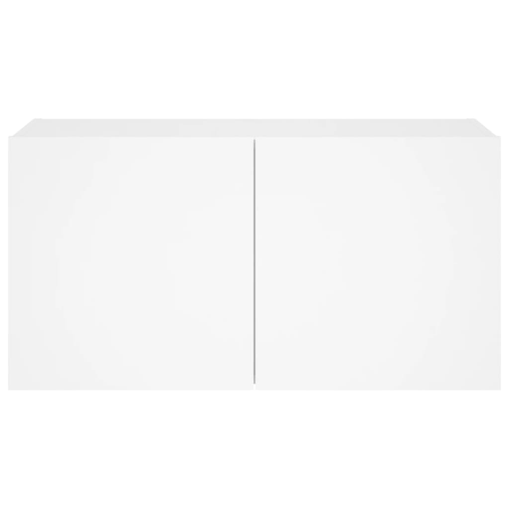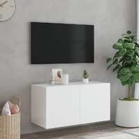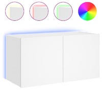 This TV wall cabinet is the perfect solution for your living space to maximise space and keep the floor areas uncluttered. Durable material: The engineered wood is of exceptional quality with a smooth surface and also features strength, stability and resistance to moisture.RGB LED lights: The wall media cabinet is equipped with vibrant RGB LED lights. With various customisable menus, you can effortlessly change the colour of the lights and even set them to adjust automatically. These LED lights not only enhance the contemporary look of the floating TV unit but also add to its trendy appeal.Ample storage space: The TV wall unit has 2 compartments behind the doors that offer ample space to keep your small items like books, DVDs, and magazines neatly organized and within reach.Versatile: The cabinet is multifunctional and can be used as a TV wall cabinet or a wall-mounted bedside cabinet. You can also combine it with other cabinets to create a stunning living wall.Wall-mounted design: This LED cabinet can be wall-mounted to add extra storage space. That way, you can maximise your floor space and keep the area clean. Good to know:Screws and plugs for inside the wall are not included. We advise to find and use screws and plugs suitable specifically for your walls. If you're not sure, you can consult with a professional. Please read and follow each step of the instructions.The product has a USB connector that requires a certified 5V USB power source (not included).