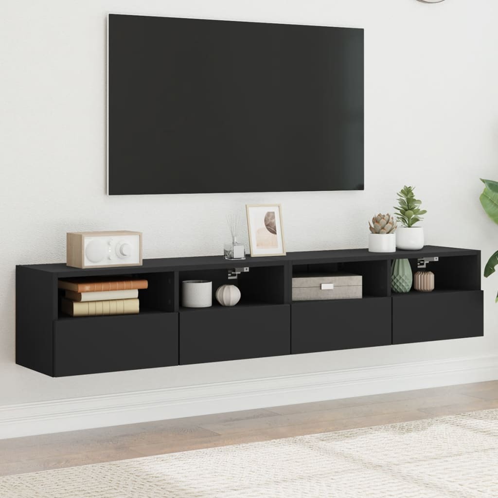 These TV wall cabinets are the perfect solution for your living space to maximise space and keep the floor areas uncluttered. Durable material: The engineered wood is of exceptional quality with a smooth surface and also features strength, stability and resistance to moisture.Ample storage space: The floating TV unit has a shelf and a compartment behind the door to keep your small items like books, DVDs, and magazines neatly organized and within reach.Wall-mounted design: This wall media unit can be wall-mounted to add extra storage space. That way, you can maximise your floor space and keep the area clean. Good to know:Screws and plugs for inside the wall are not included. We advise to find and use screws and plugs suitable specifically for your walls. If you're not sure, you can consult with a professional. Please read and follow each step of the instructions.