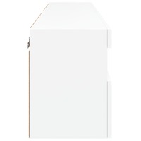 These TV wall cabinets are the perfect solution for your living space to maximise space and keep the floor areas uncluttered. Durable material: The engineered wood is of exceptional quality with a smooth surface and also features strength, stability and resistance to moisture.RGB LED lights: The wall media cabinet is equipped with vibrant RGB LED lights. With various customisable menus, you can effortlessly change the colour of the lights and even set them to adjust automatically. These LED lights not only enhance the contemporary look of the floating TV unit but also add to its trendy appeal.Ample storage space: The TV wall unit offers ample space to keep your small items like books, DVDs, and magazines neatly organized and within reach.Versatile: The cabinet is multifunctional and can be used as a TV wall cabinet or a wall-mounted bedside cabinet. You can also combine it with other cabinets to create a stunning living wall.Wall-mounted design: This LED cabinet can be wall-mounted to add extra storage space. That way, you can maximise your floor space and keep the area clean. Good to know:Screws and plugs for inside the wall are not included. We advise to find and use screws and plugs suitable specifically for your walls. If you're not sure, you can consult with a professional. Please read and follow each step of the instructions.The product has a USB connector that requires a certified 5V USB power source (not included).