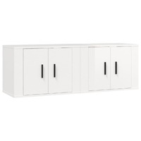 These wall-mounted TV cabinets feature a sleek and classic design, making them a decorative and practical extension to your decor. Durable material: The engineered wood is of exceptional quality with smooth surface and also features strength, stability and resistance to moisture.Ample storage space: The TV stand has a compartment, providing ample storage space for you to organise items like a media player, magazines, and others.Wall-mounted function: The TV unit doesn't take up any floor space. You can hang it on the wall easily.Sturdy top: The top of the media cabinet serves as an ideal place to put items such as books and ornaments.Practical doors: Keep your essentials free from dust by hiding them behind the door of the media unit. Good to know:To make assembly as easy as possible, each product is delivered with a manual.Screws and plugs for inside the wall are not included. We advise to find and use screws and plugs suitable specifically for your walls. If you're not sure, you can consult with a professional. Please read and follow each step of the instructions.