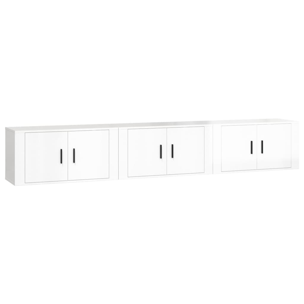 These wall-mounted TV cabinets feature a sleek and classic design, making them a decorative and practical extension to your decor. Durable material: The engineered wood is of exceptional quality with smooth surface and also features strength, stability and resistance to moisture.Ample storage space: The TV stand has a compartment, providing ample storage space for you to organise items like a media player, magazines, and others.Wall-mounted function: The TV unit doesn't take up any floor space. You can hang it on the wall easily.Sturdy top: The top of the media cabinet serves as an ideal place to put items such as books and ornaments.Practical doors: Keep your essentials free from dust by hiding them behind the door of the media unit. Good to know:To make assembly as easy as possible, each product is delivered with a manual.Screws and plugs for inside the wall are not included. We advise to find and use screws and plugs suitable specifically for your walls. If you're not sure, you can consult with a professional. Please read and follow each step of the instructions.