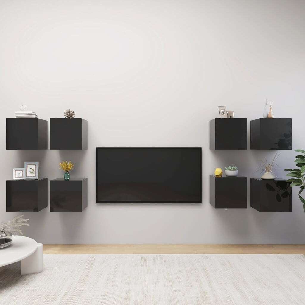 This TV cabinet set is designed to be a focal point of your room with a trendy yet practical design. The TV stand is attached to the wall, making it a timeless addition to your home. It has a big compartment which makes it an ideal place for storing all your magazines, DVDs or other items. This Hifi cabinet can be assembled with the door left or right open. It is easy to clean with a damp cloth.